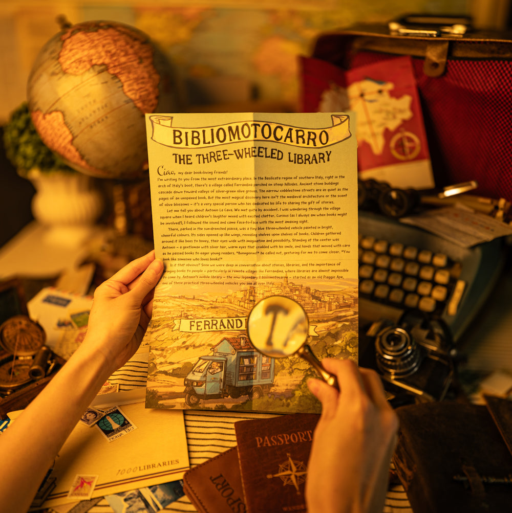 Maestro La Cava, a retired teacher, heartbroken by the lack of books, teachers, and libraries in rural southern Italy, turned his van into the Bibliomotocarro, a roaming library for children. He’s spent years driving from village to village, delivering stories and hope to places where stories are often out of reach.